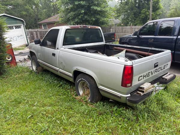 No engine or transmission, short bed, 2wheel drive, most interior is in it but needs installed, straight body but has typical rust over rear wheel wells. Was a 350/ 700r4.